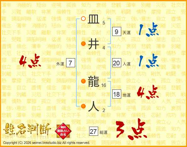 皿井龍人さんの総運は27画の3点!