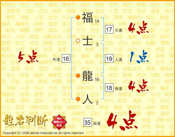 福士龍人さんの総運は35画の4点!