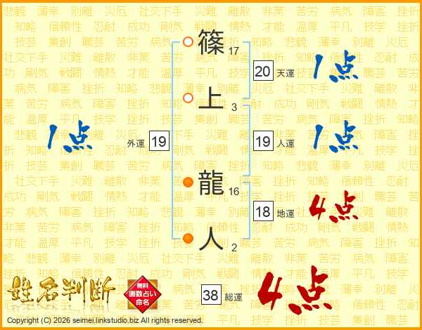 篠上龍人さんの総運は38画の4点!