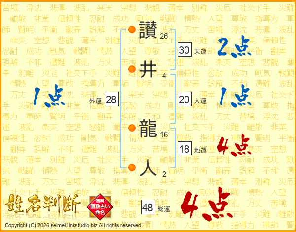 讃井龍人さんの総運は48画の4点!