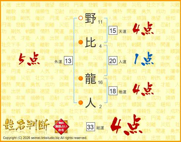 野比龍人さんの総運は33画の4点!