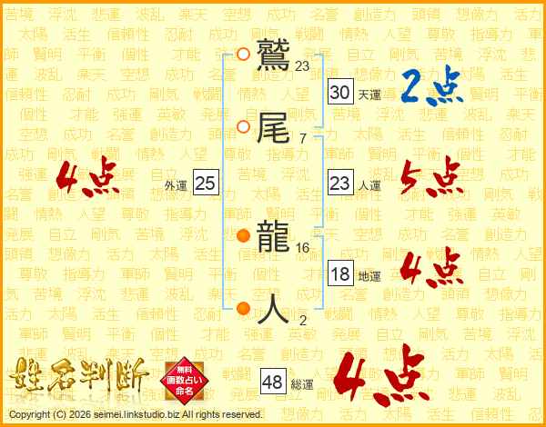 鷲尾龍人さんの総運は48画の4点!