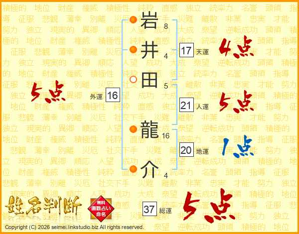 岩井田龍介さんの総運は37画の5点!