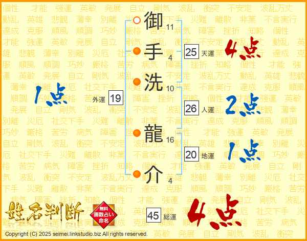 御手洗龍介さんの総運は45画の4点!