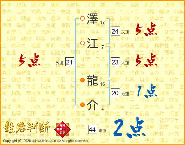 澤江龍介さんの総運は44画の2点!