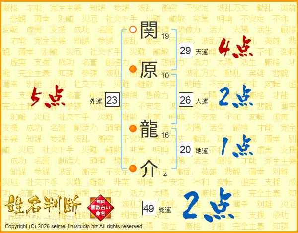 関原龍介さんの総運は49画の2点!