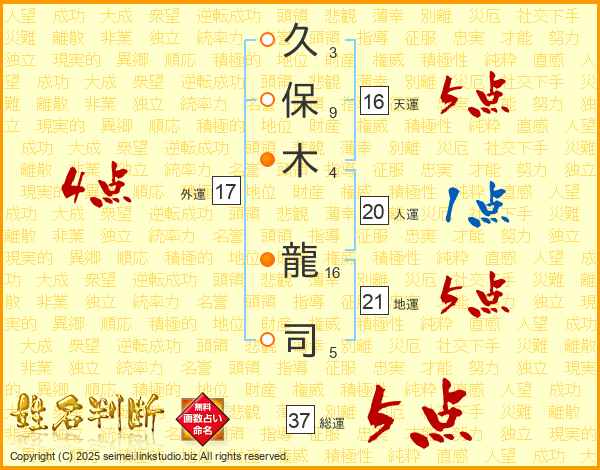 久保木龍司さんの総運は37画の5点!