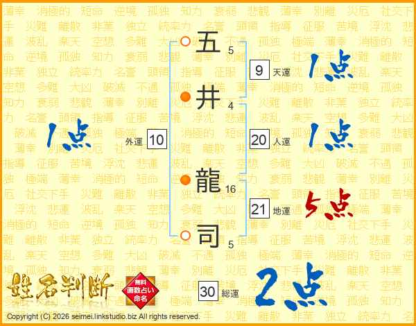 五井龍司さんの総運は30画の2点!
