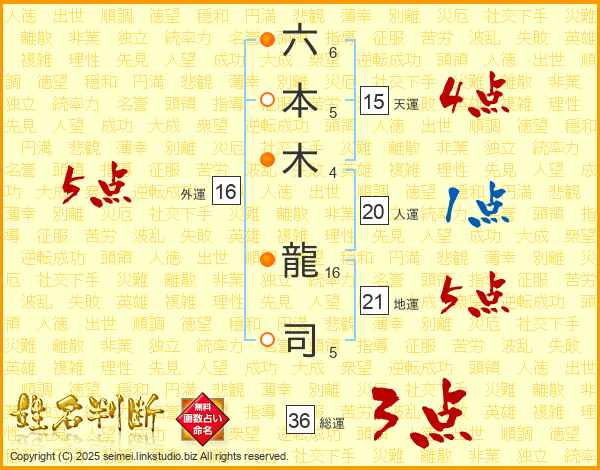 六(6画)本(5画)木(4画) 龍(16画)司(5画)