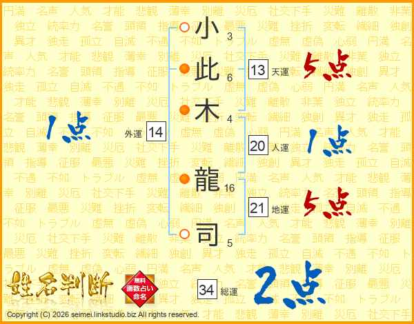 小此木龍司さんの天運は13画の5点!