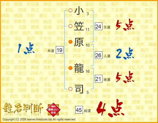 小笠原龍司さんの総運は45画の4点!