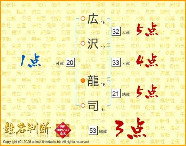 広沢龍司さんの天運は32画の5点!