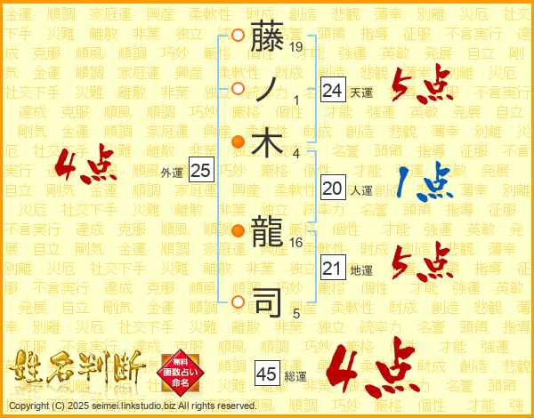 藤ノ木龍司さんの総運は45画の4点!
