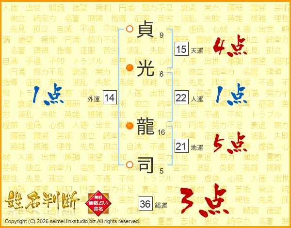 貞光龍司さんの地運は21画の5点!