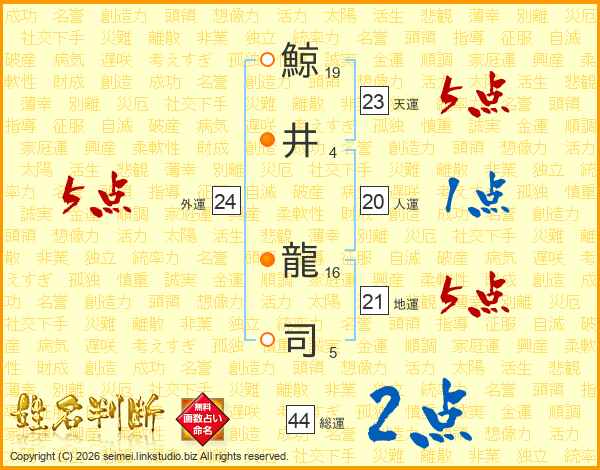 鯨(19画)井(4画) 龍(16画)司(5画)
