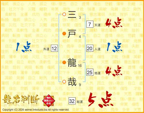 三戸龍哉さんの総運は32画の5点!