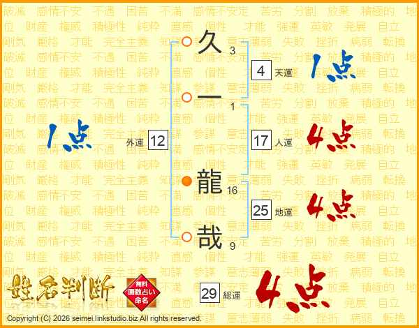 久一龍哉さんの総運は29画の4点!