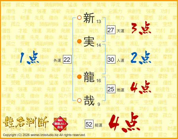 新実龍哉さんの総運は52画の4点!