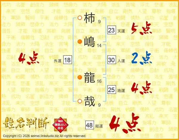 柿嶋龍哉さんの総運は48画の4点!
