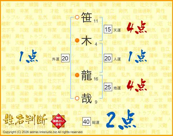 笹木龍哉さんの総運は40画の2点!