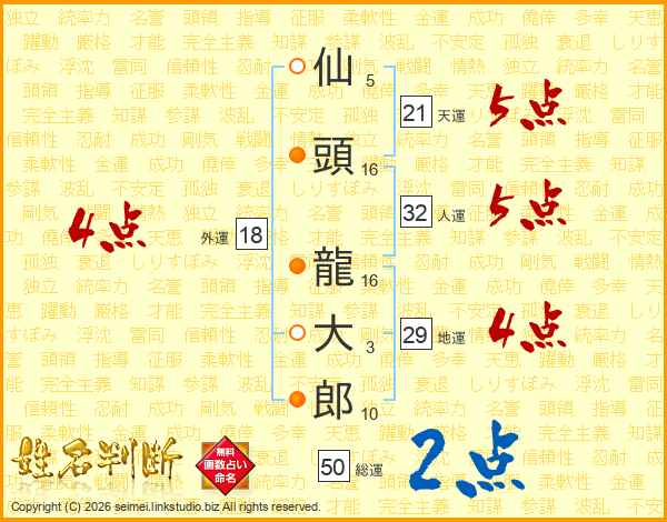 仙頭龍大郎さんの人運は32画の5点!
