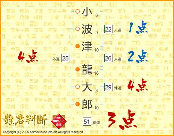 小波津龍大郎さんの人運は26画の2点!