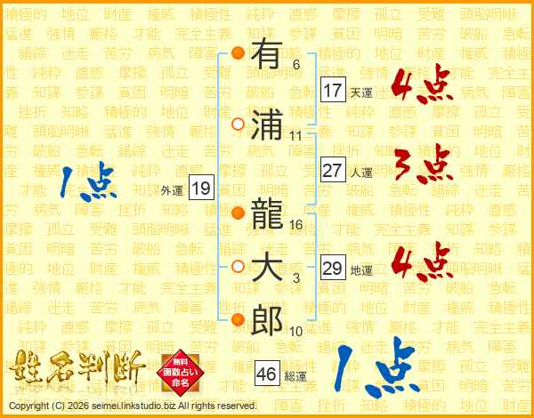 有(6画)浦(11画) 龍(16画)大(3画)郎(10画)