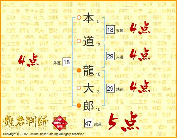 本道龍大郎さんの総運は47画の5点!