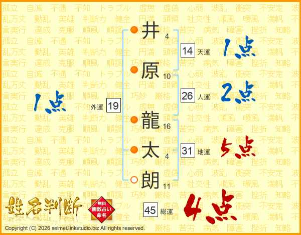 井原龍太朗さんの総運は45画の4点!