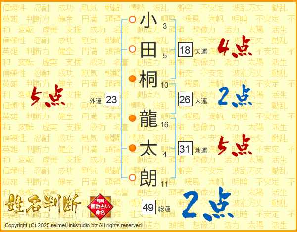 小田桐龍太朗さんの総運は49画の2点!