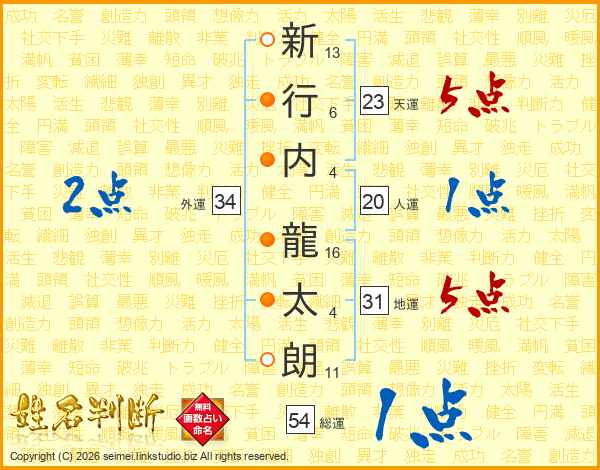 新行内龍太朗さんの総運は54画の1点!