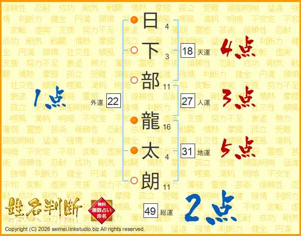 日下部龍太朗さんの地運は31画の5点!