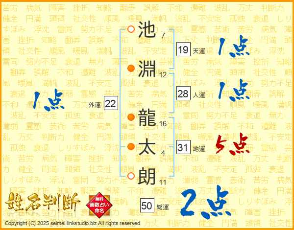 池淵龍太朗さんの地運は31画の5点!