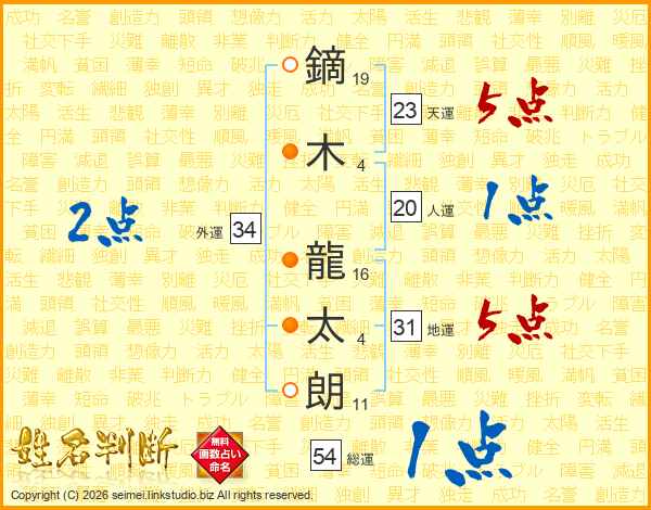 鏑木龍太朗さんの天運は23画の5点!
