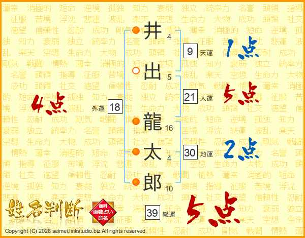 井出龍太郎さんの総運は39画の5点!