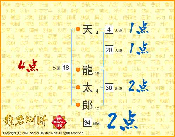 天龍太郎さんの天運は4画の1点!