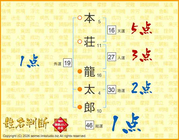 本荘龍太郎さんの総運は46画の1点!