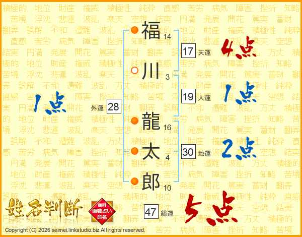 福川龍太郎さんの総運は47画の5点!