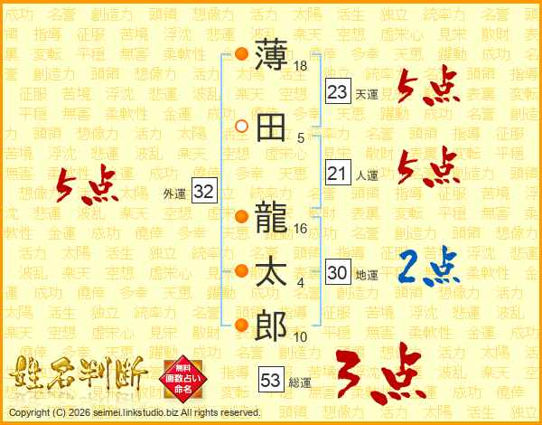 薄田龍太郎さんの天運は23画の5点!