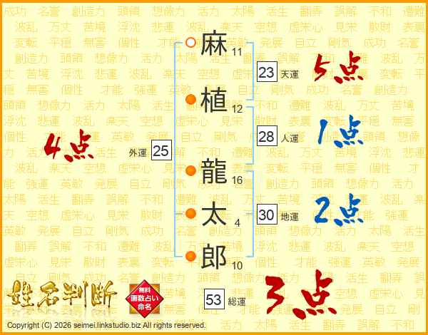 麻植龍太郎さんの天運は23画の5点!