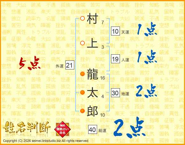村上龍太郎さんの外運は21画の5点!