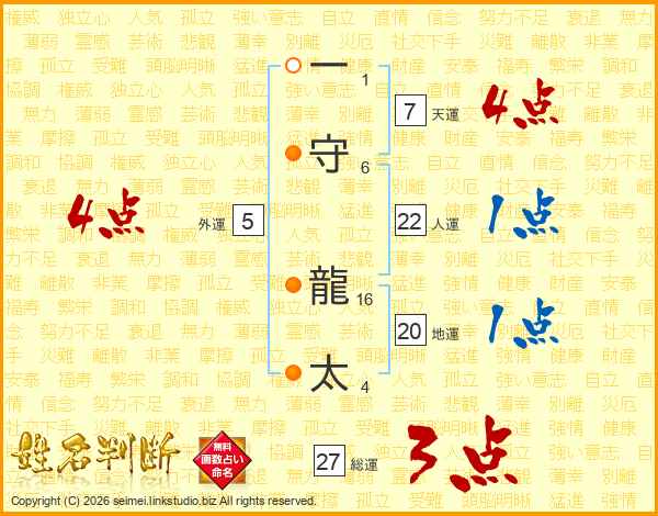 一守龍太さんの総運は27画の3点!