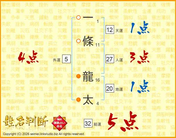 一條龍太さんの総運は32画の5点!