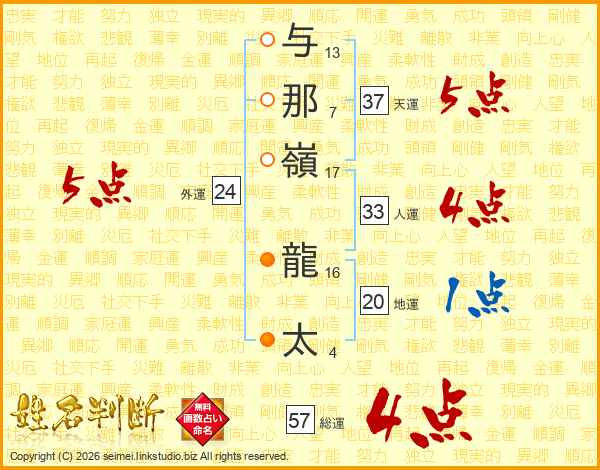 与那嶺龍太さんの天運は37画の5点!