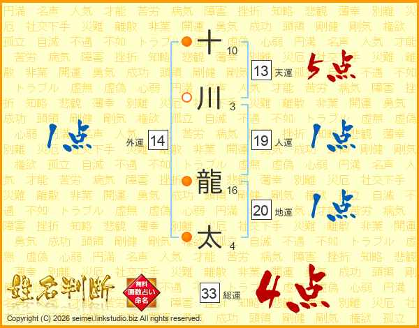 十川龍太さんの総運は33画の4点!