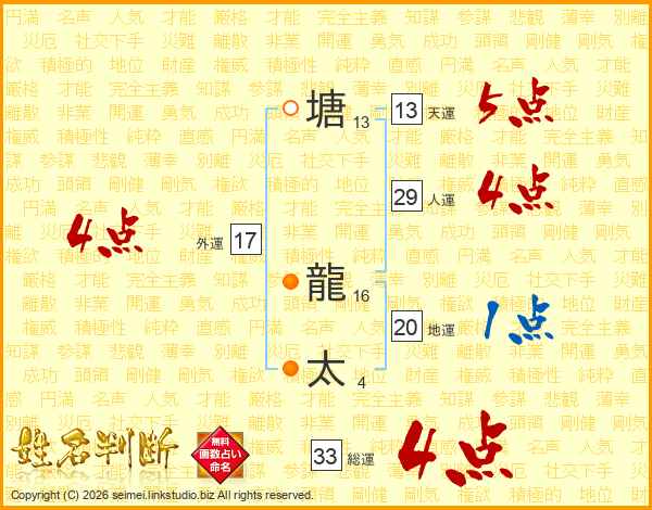 塘龍太さんの総運は33画の4点!