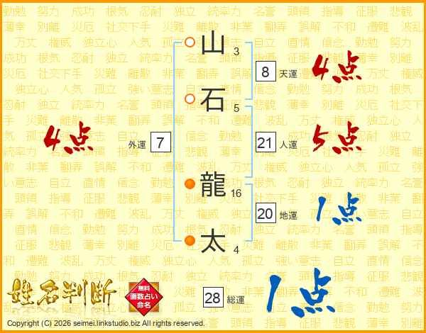 山石龍太さんの総運は28画の1点!
