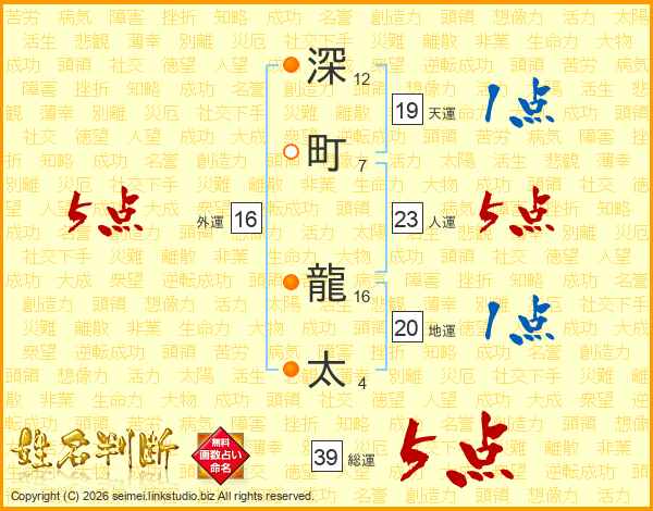 深町龍太さんの総運は39画の5点!