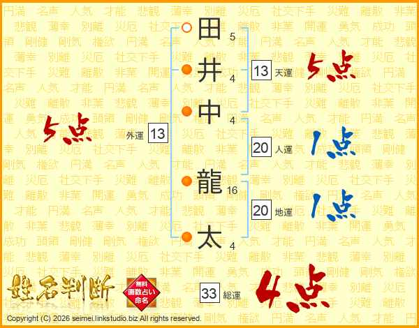 田井中龍太さんの総運は33画の4点!