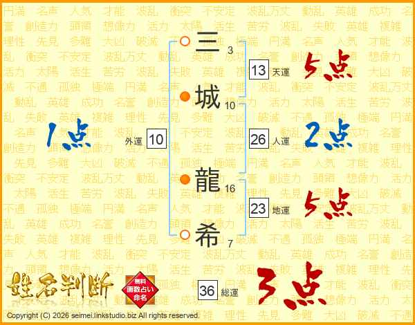 三城龍希さんの総運は36画の3点!